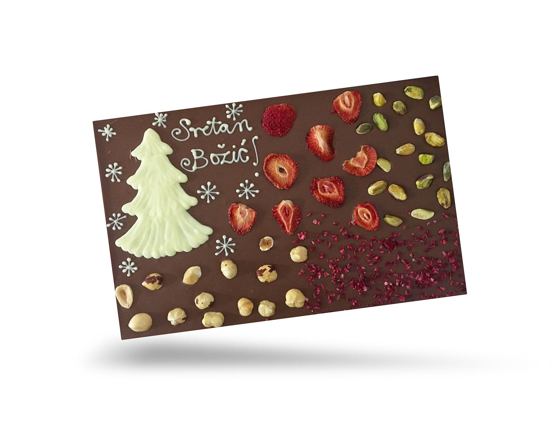 Chocolate bar 850g with multiple ingredients on top.
