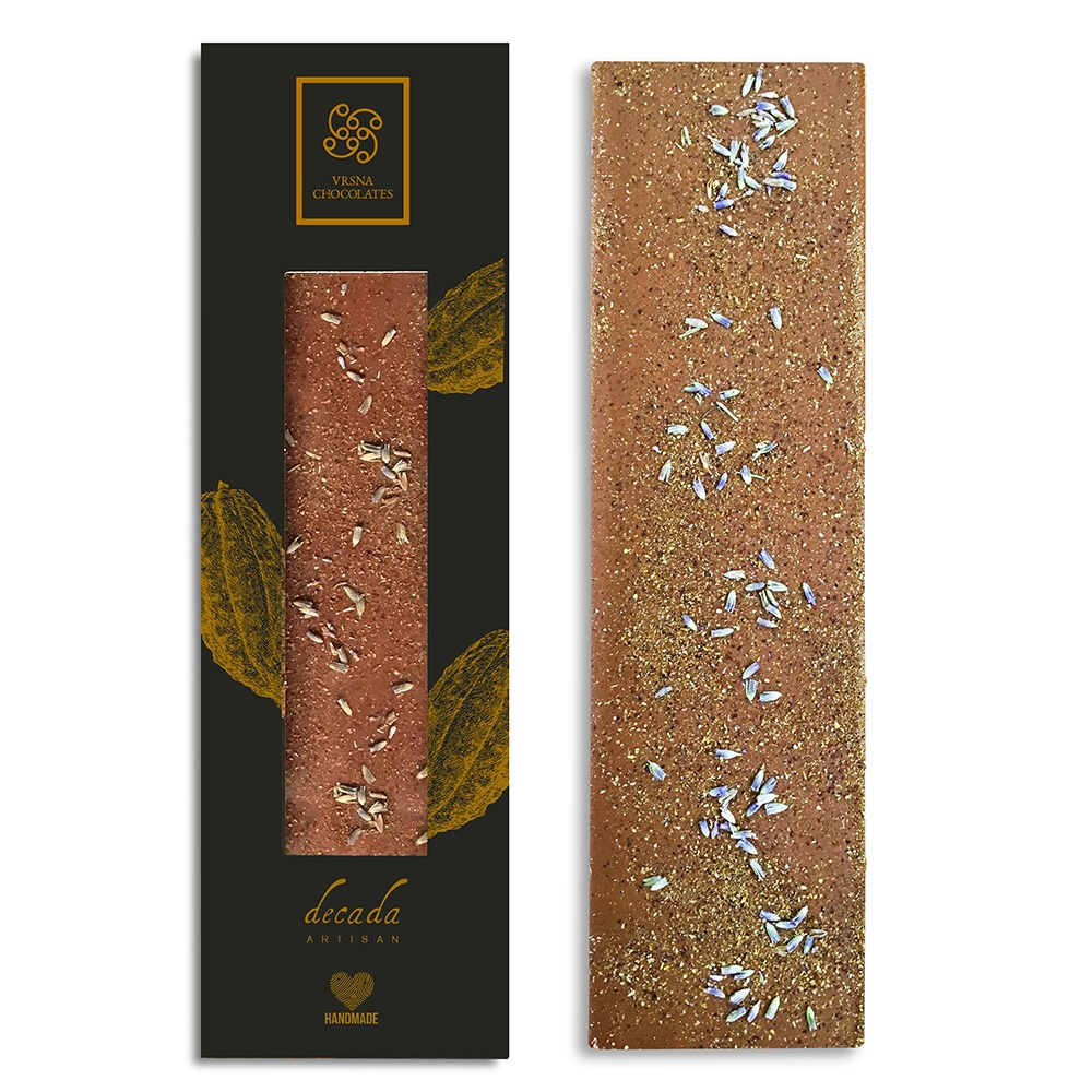 Fine, handmade milk chocolate with sprinkles of mild carob and aromatic lavender. This chocolate arouses your taste buds and your sense of smell like a measured dose of Mediterranean rest and relaxation.