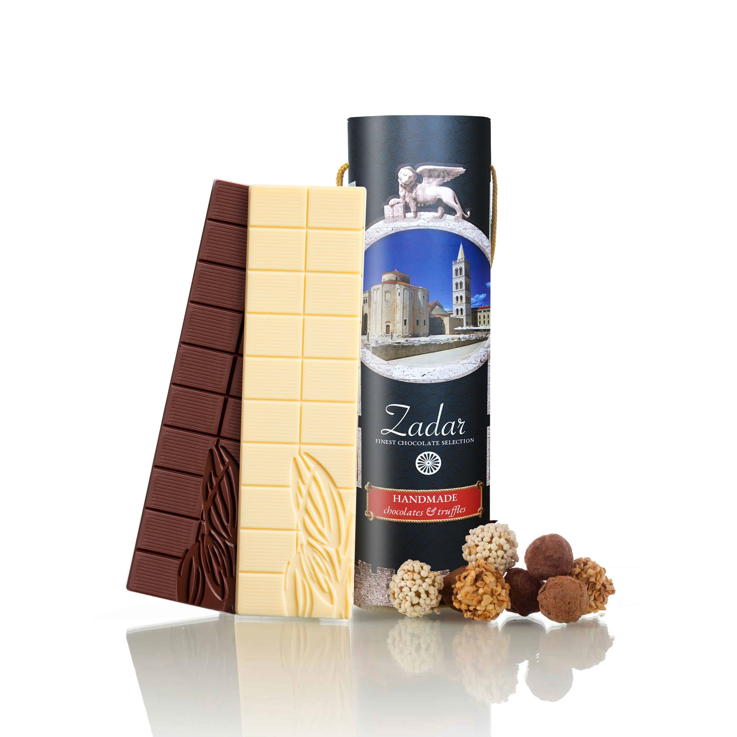 Tube su posebno dizajnirane kako bi ujedinile različite vrste čokolada i čokoladnih pralina. U setu tube nalaze se bijela i tamna čokolada uz osam ručno rađenih vrsnih čokoladnih pralina. Vrsne praline oduševljavaju ljubitelje čokolade svojim inovativnim posipima i dodacima čime obogaćuju iznenađenje uz dvije čokolade.